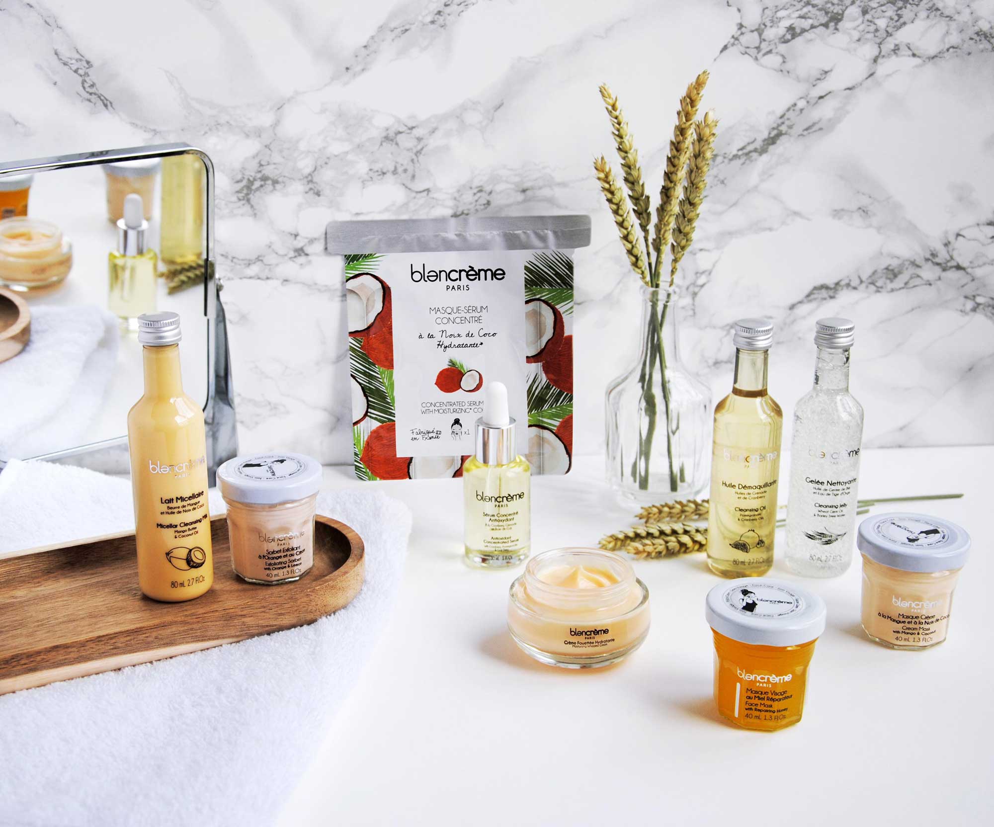 Les soins du visage que nous réalisons avec les cosmétiques blancrème mêlent soin, plaisir et gourmandise. En effet la marque blancrème créée en 2009, unit dans ses produits l’univers de la cosmétique et de l’épicerie fine. Ses produits sont fabriqués en France et se composent principalement d’ingrédients d’origine naturelle (fruits et plantes).